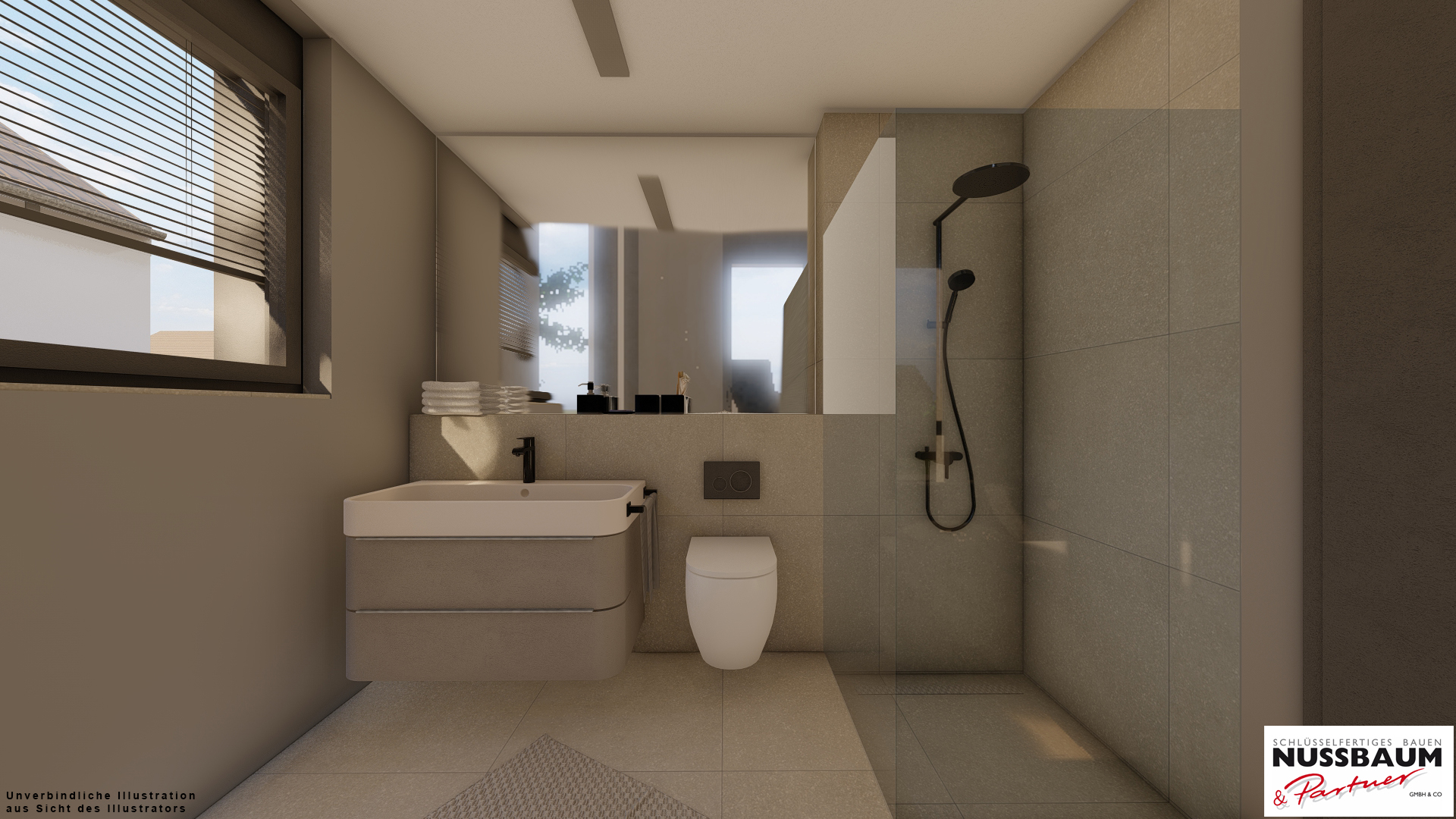 – Modernes Bad mit schönen Fliesenformaten