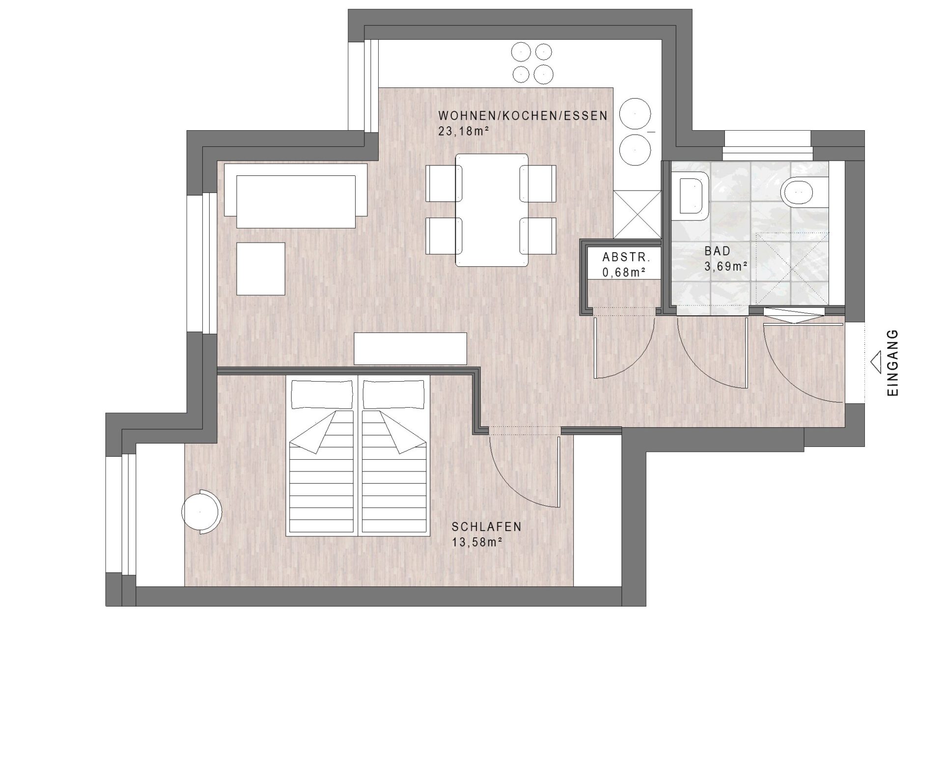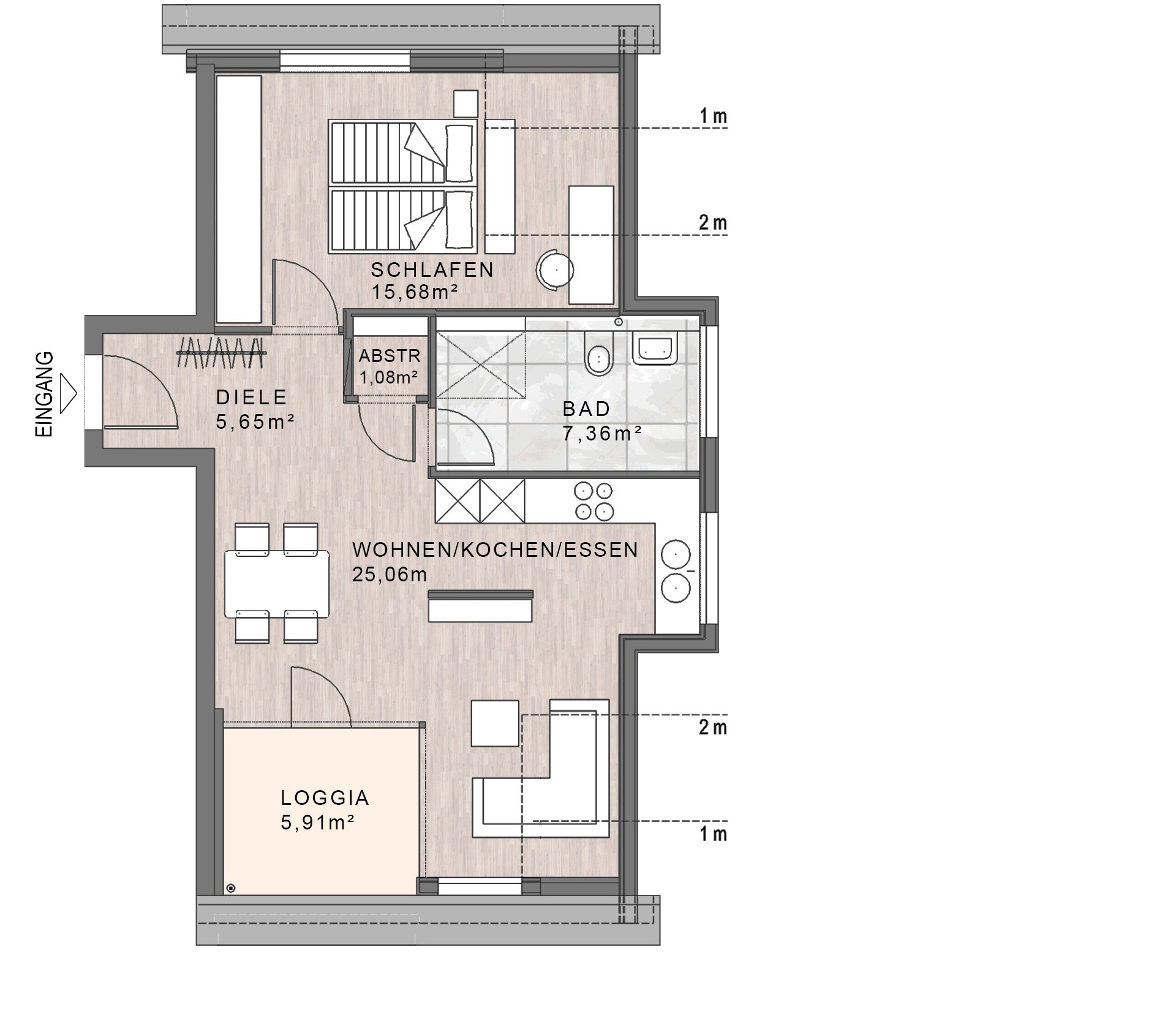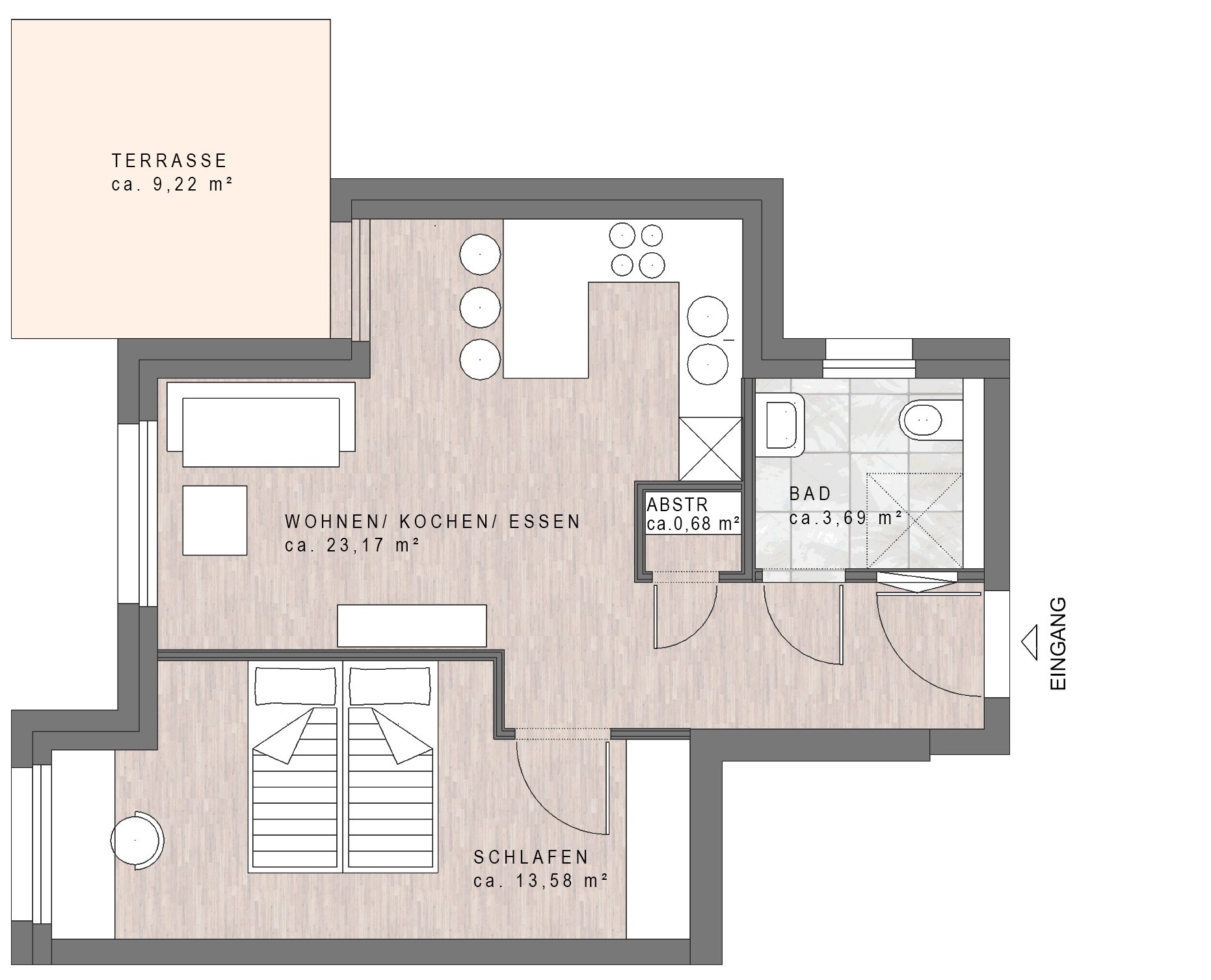 Wohnfläche (WoFIV) ca. 43,42 m² inkl. 1/4 Terrasse