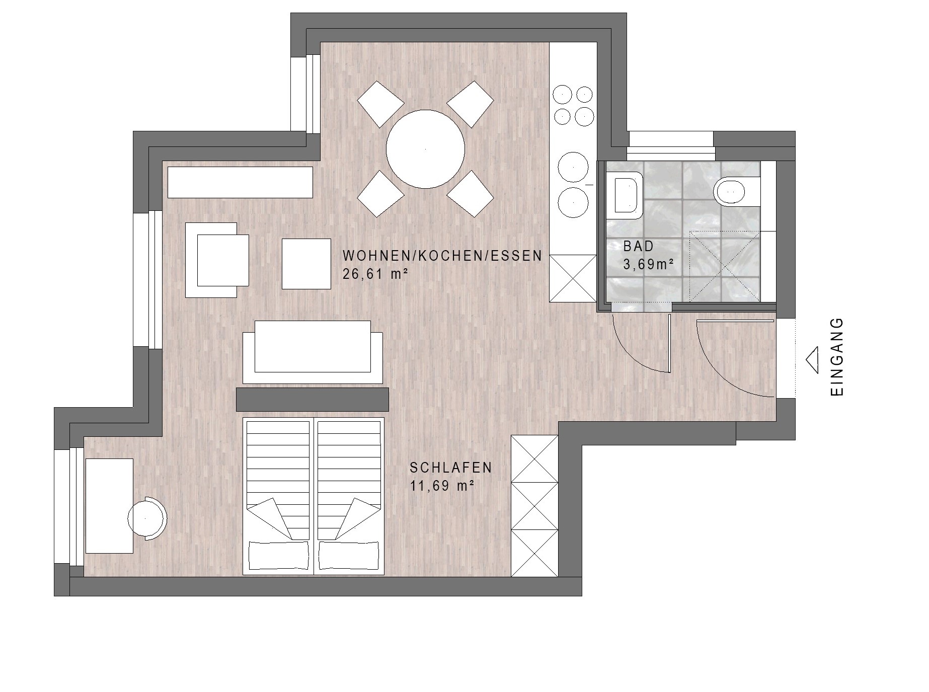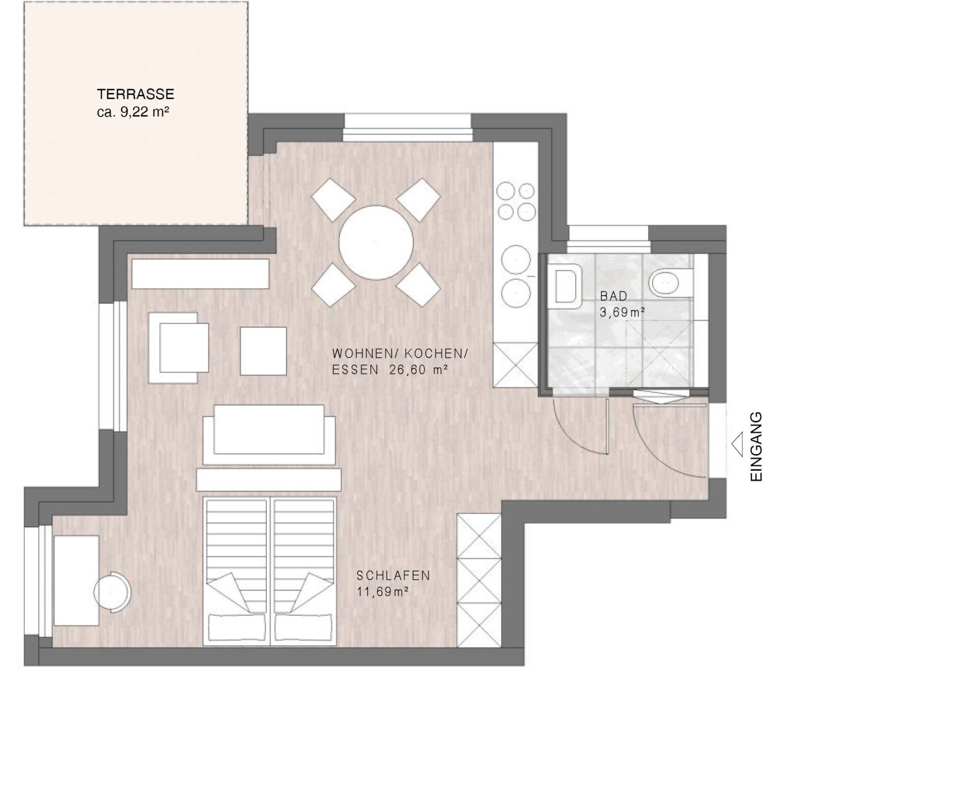 Wohnfläche (WoFIV) ca. 44,27 m² inkl. 1/4 Terrasse