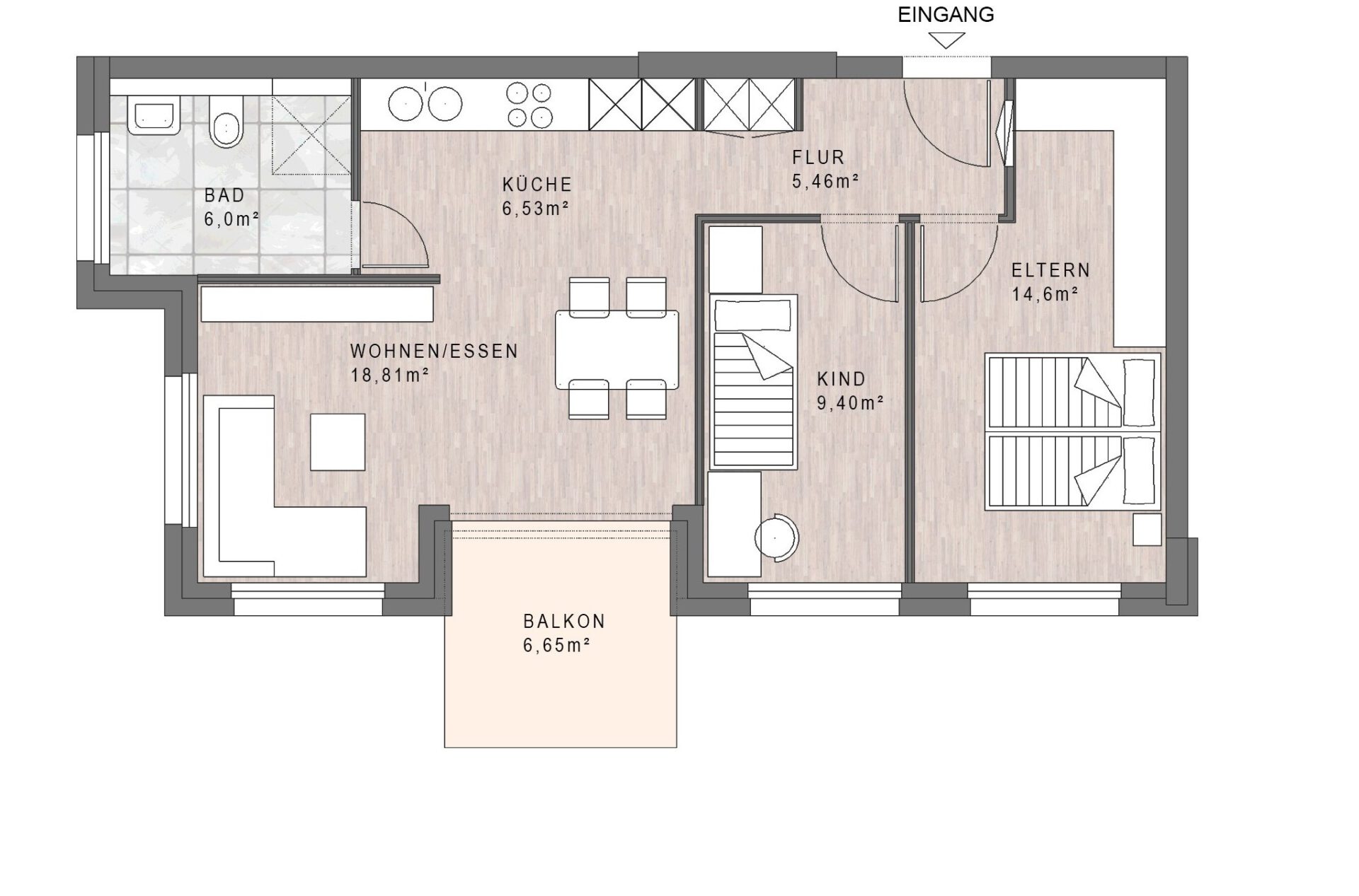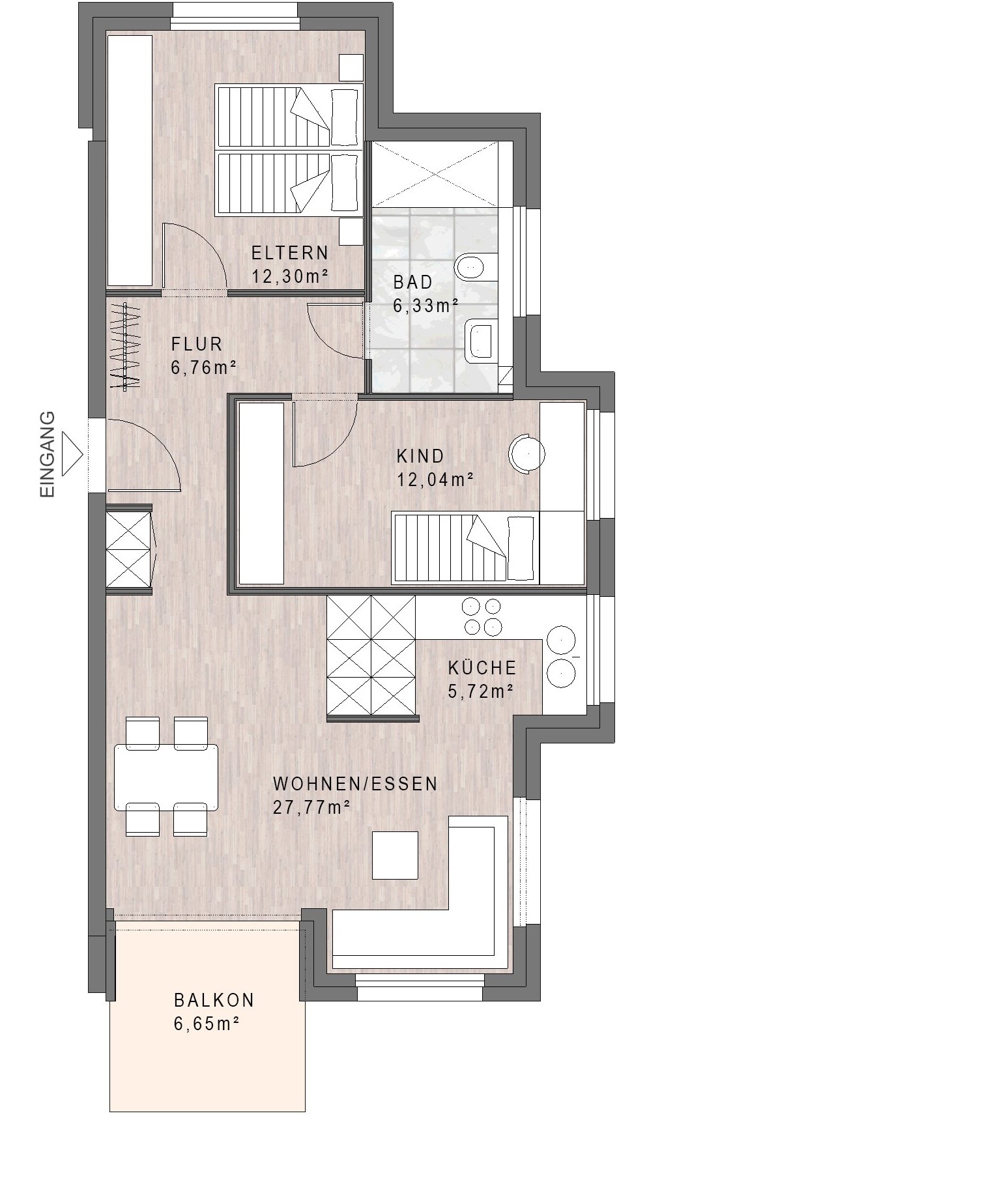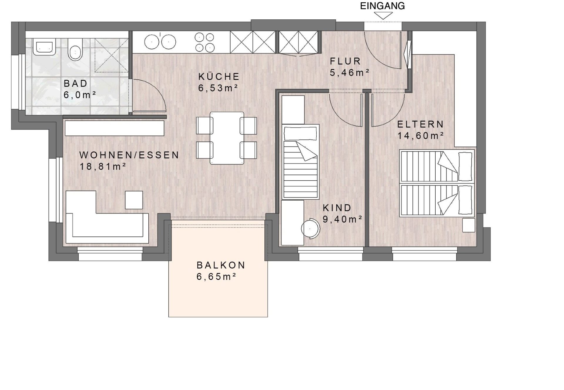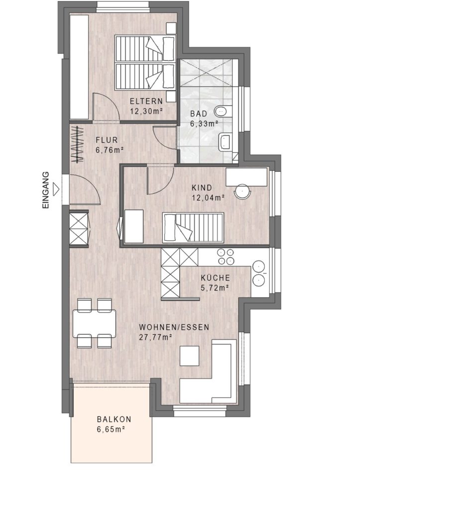 Wohnfläche (WoFIV) ca. 70,25 m² inkl. 1/2 Balkon
