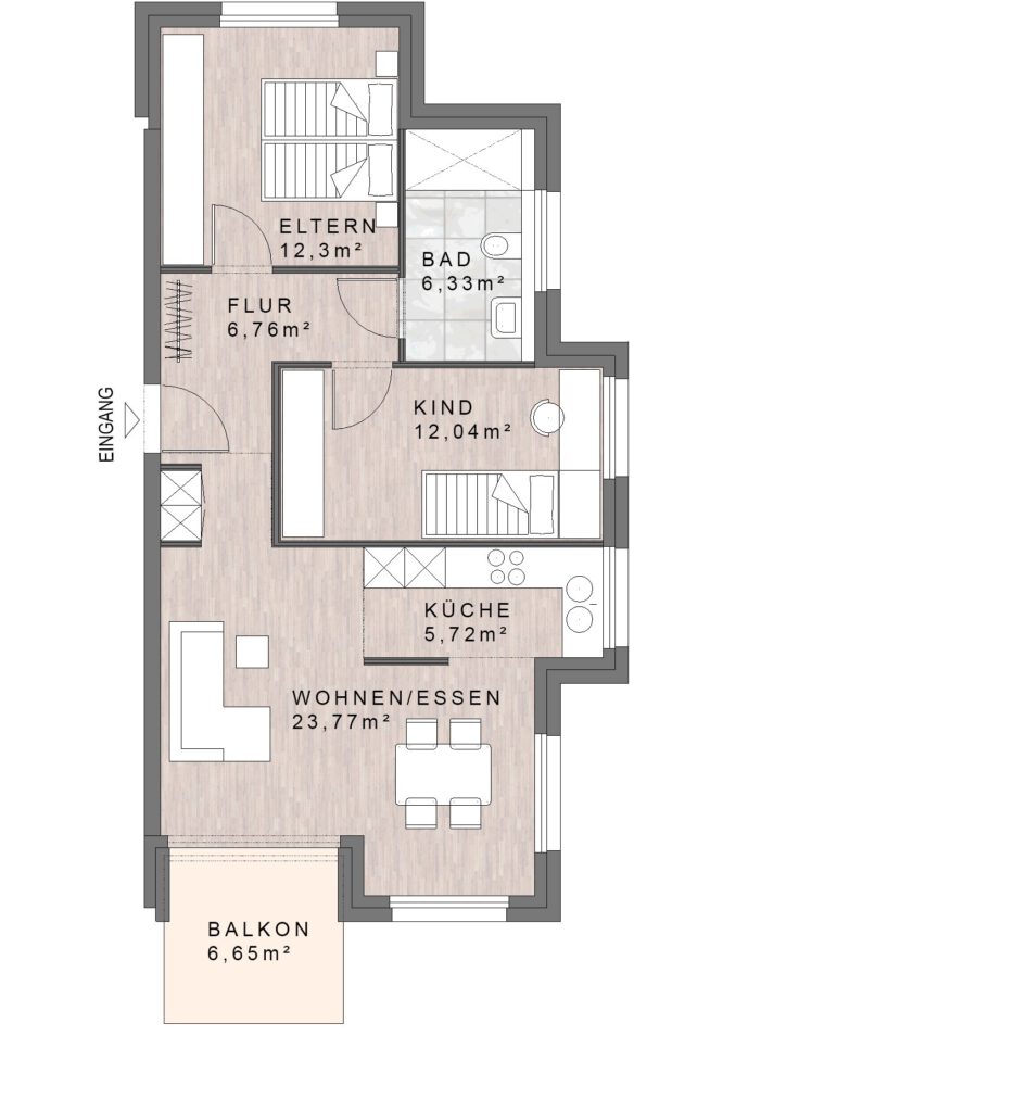 Wohnfläche (WoFIV) ca. 70,25 m² inkl. 1/2 Balkon
